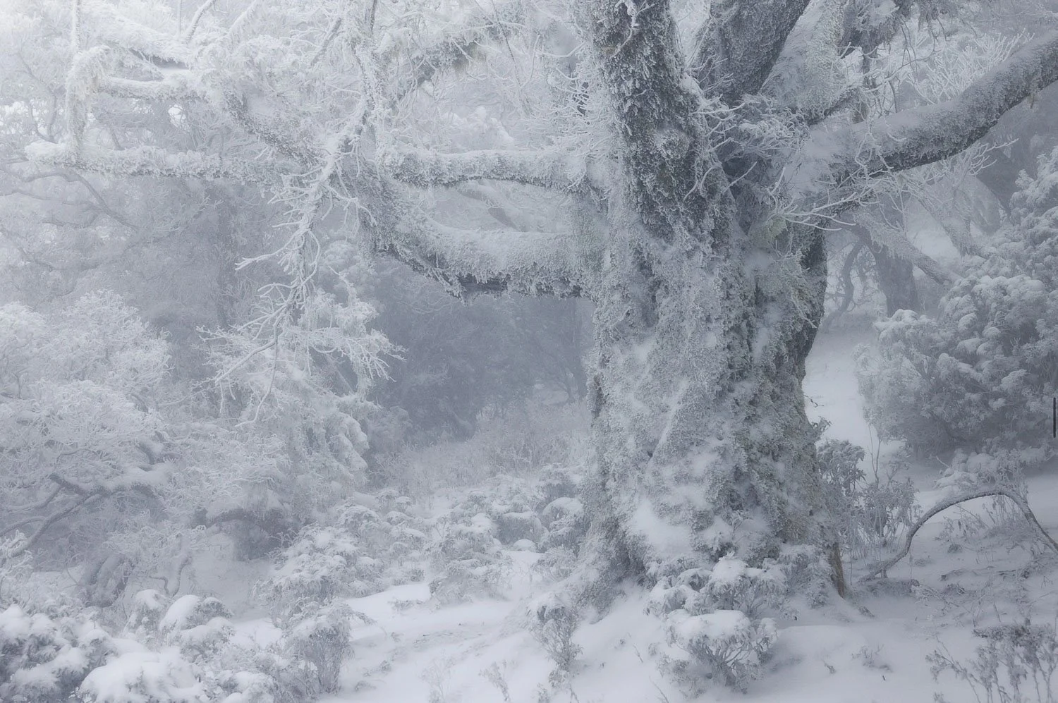 “Amid a snowstorm in the Japanese mountains, this ancient tree stood veiled in frost and silence. I was drawn to its enduring presence, revealing a quiet strength within the winter mist.”