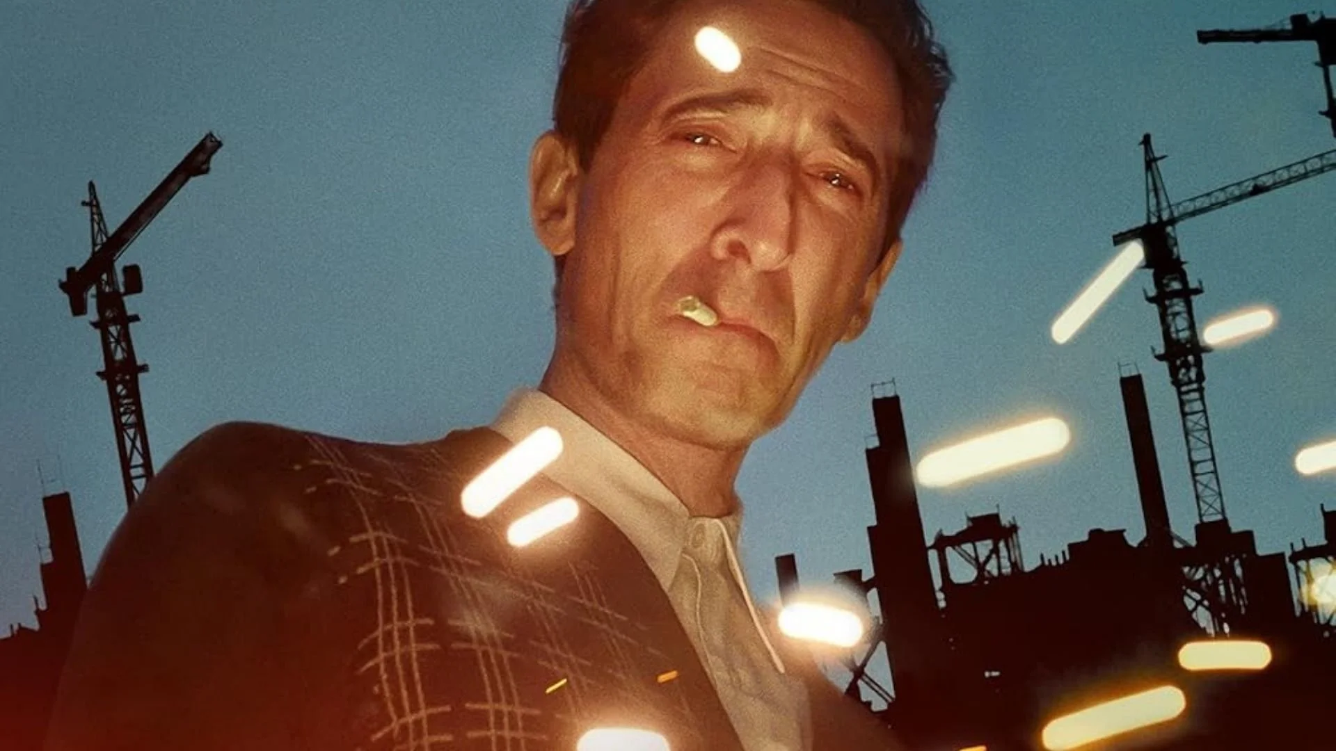 The Brutalist opens with a striking image—Tóth emerges from a cramped, dark interior into daylight, his face lit with joy as he lays eyes on the Statue of Liberty. But director Brady Corbet twists the moment by presenting the iconic symbol upside down, floating at the top of the frame. A symbolic warping of the American Dream. Disorientation is a constant theme. And we experience this too. A number of times the film withholds subtitles for long stretches of non-English dialogue. We’re just as in the dark.